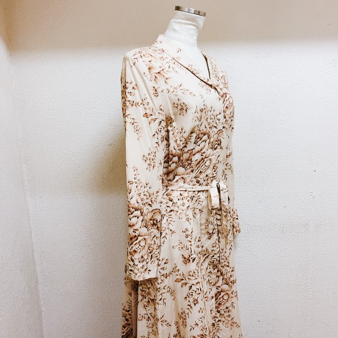 ヴィンテージ 長袖ワンピース ベージュ 花柄 vintage onepiece