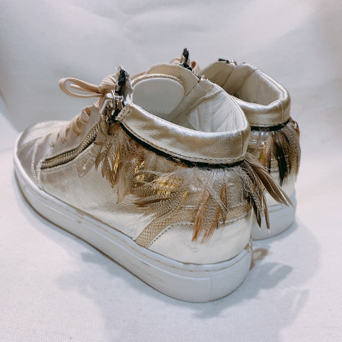 クライムロンドン スニーカー シルバー レザー ハイカットスニーカー 羽根 CRIME LONDON