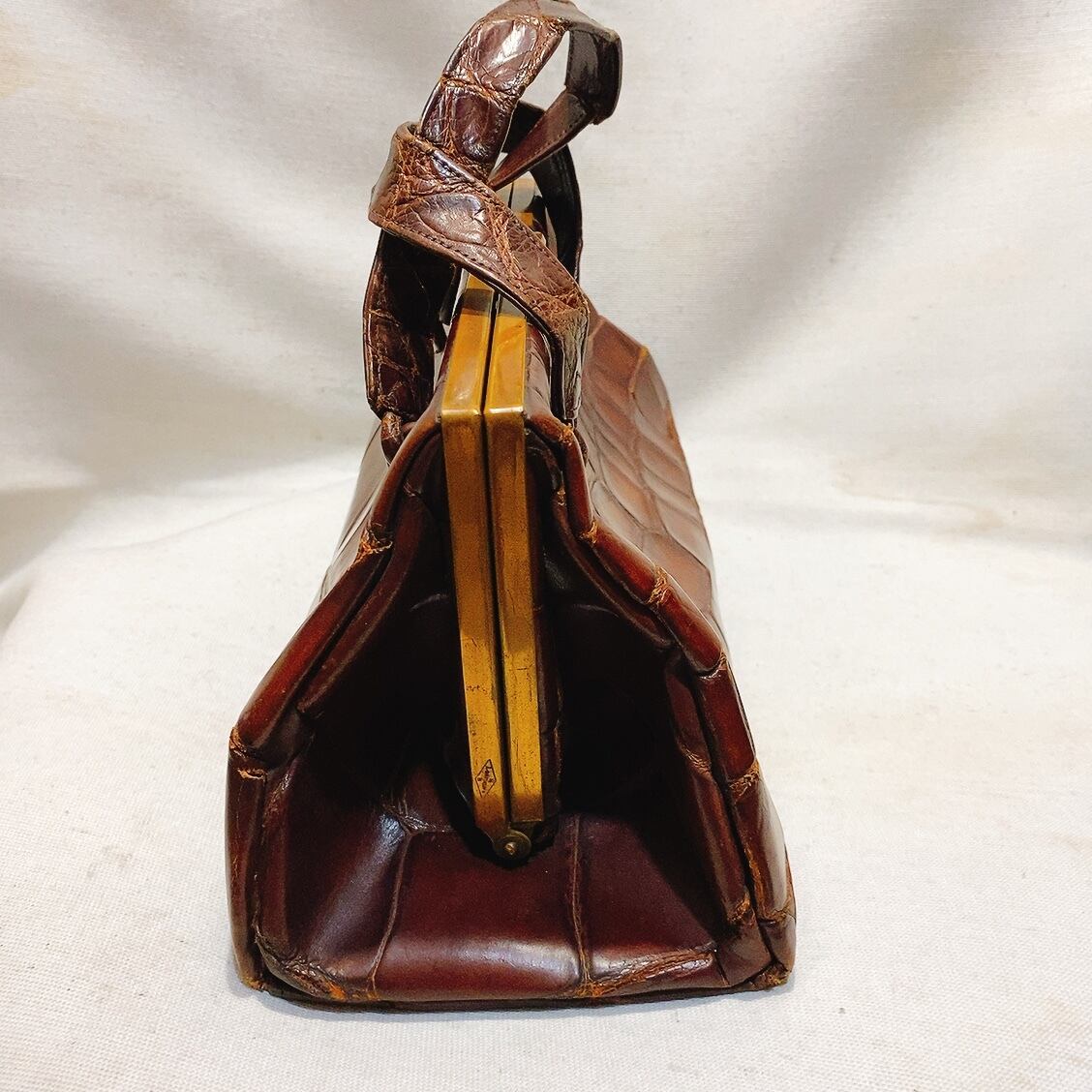 ラッセル&ブロムリー ハンドバッグ RUSSELL&BROMLEY クロコダイル 焦げ茶色 ヴィンテージ