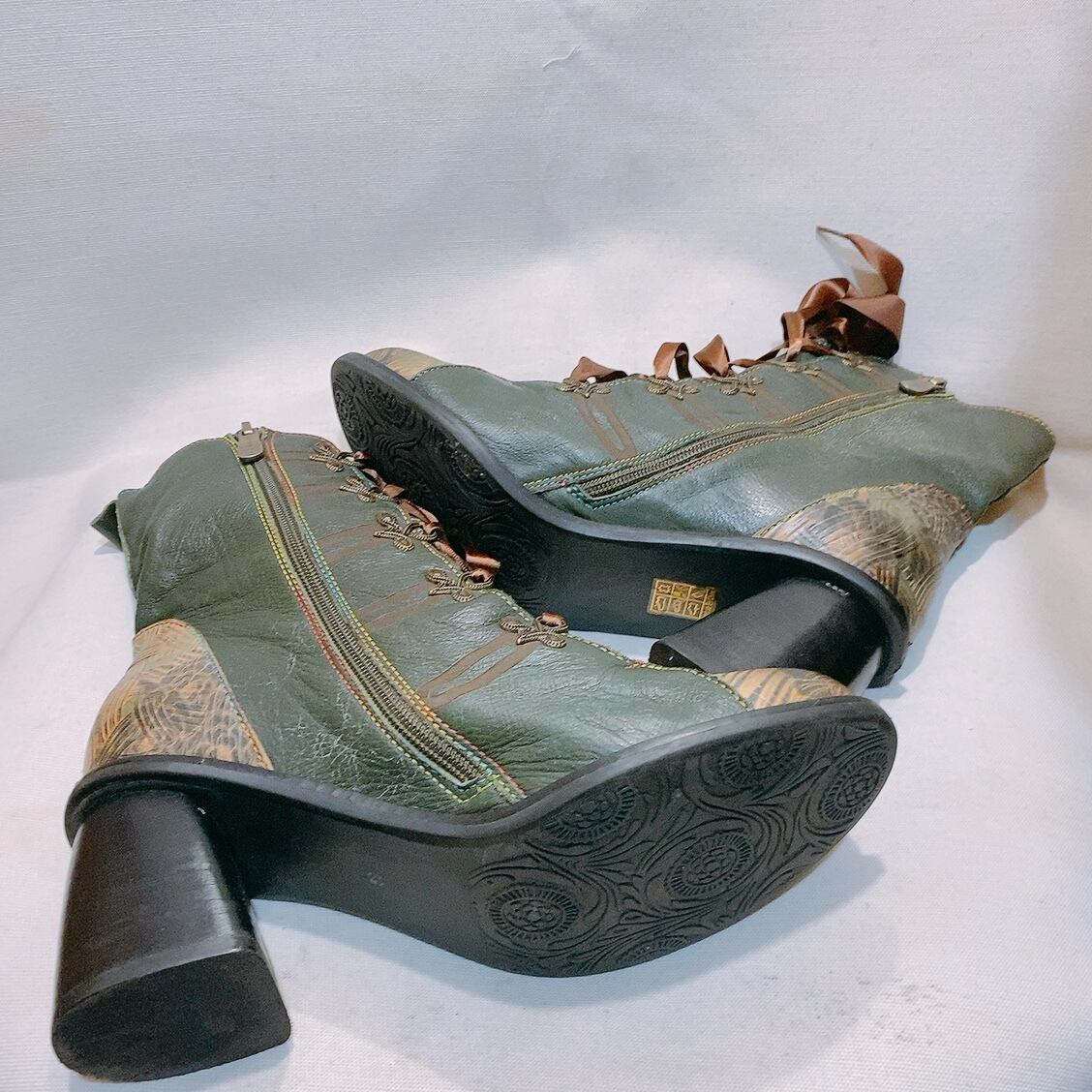 ラルティスト ショートブーツ カーキ 花柄 レースアップ L'ARTISTE