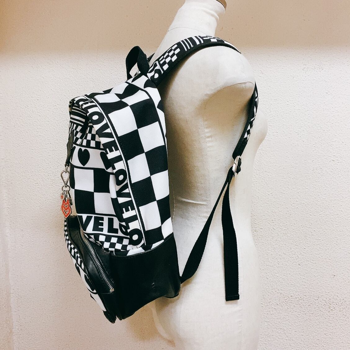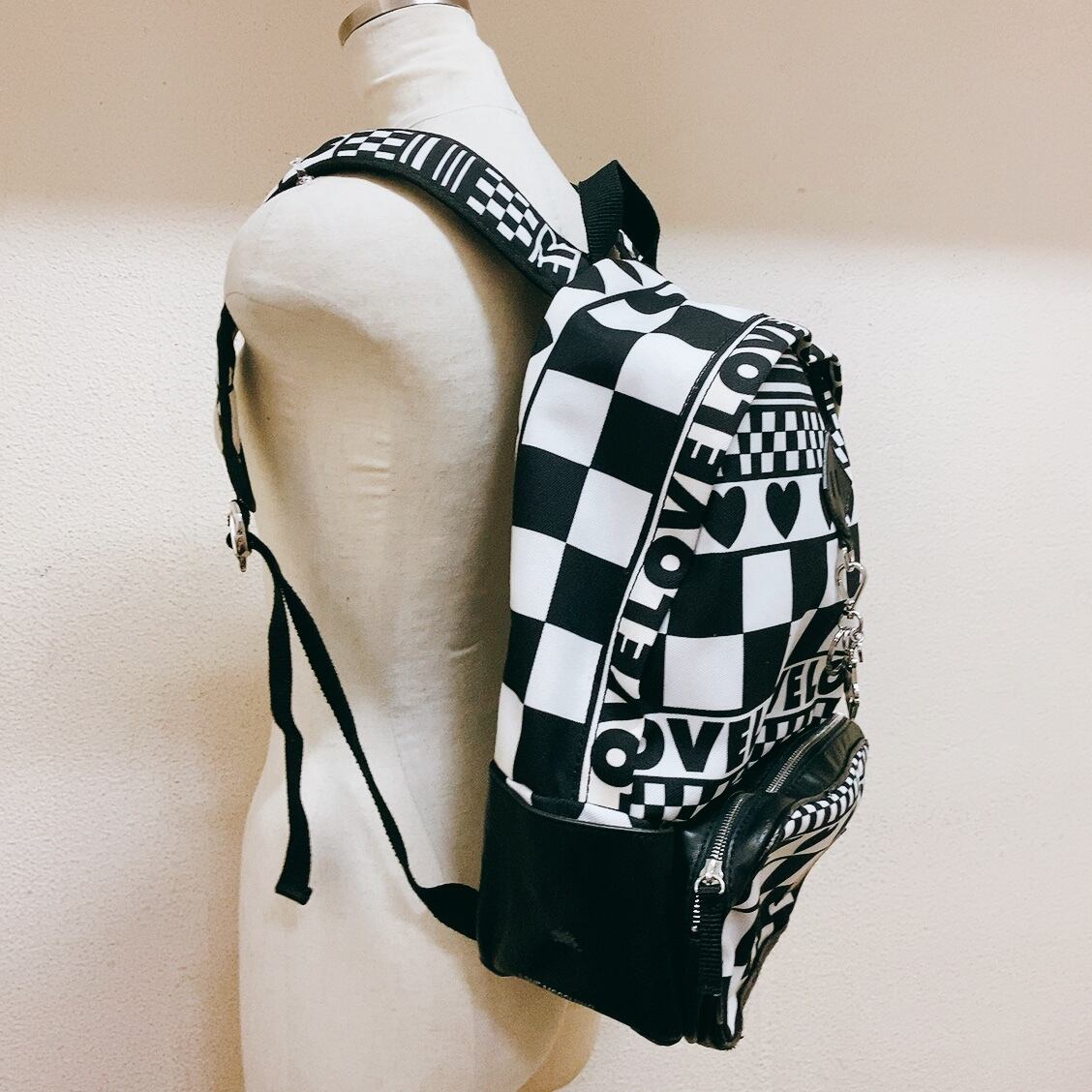 モスキーノ リュック 黒 白 チェッカー柄 MOSCHINO
