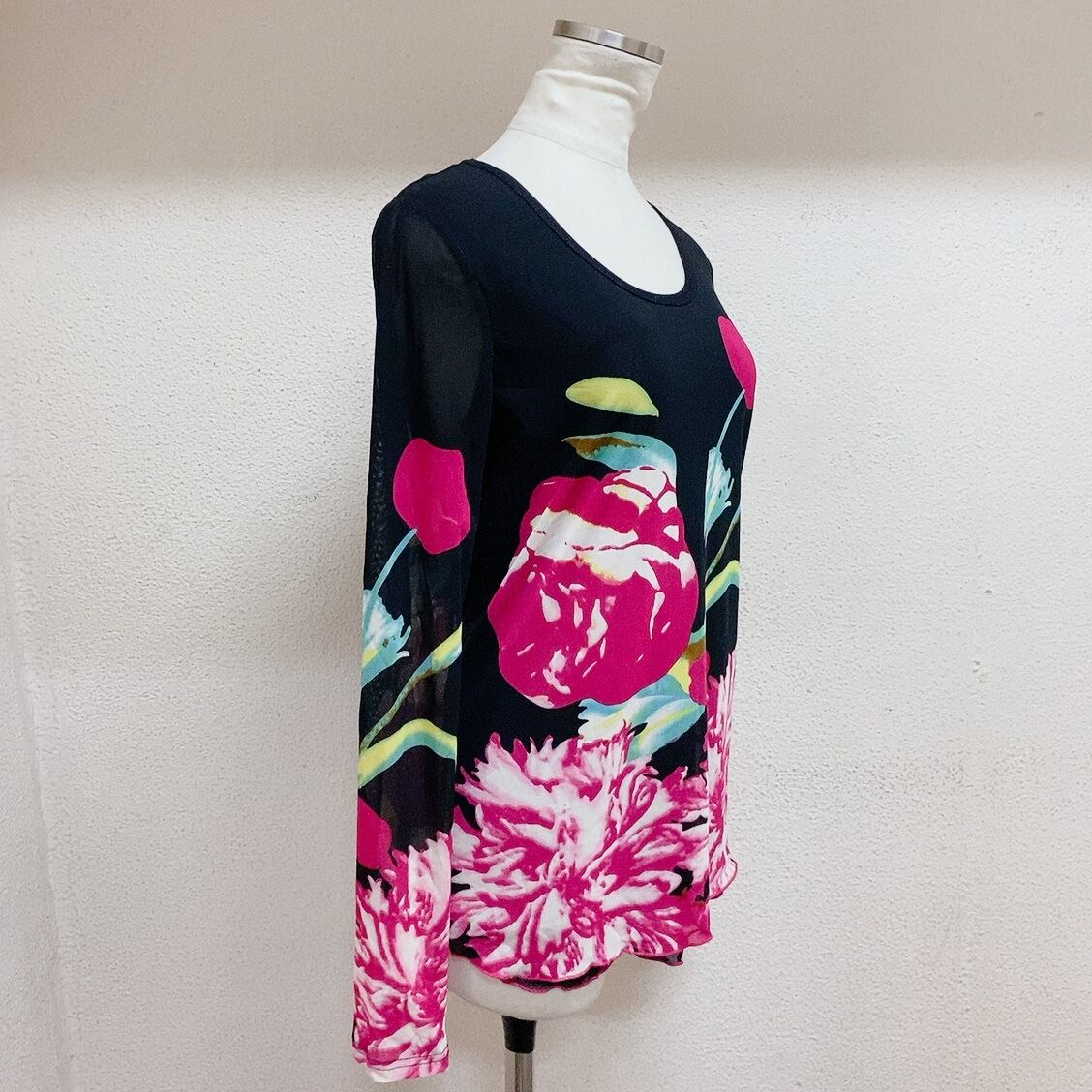 ヴィンテージ 長袖トップス 黒 花柄 vintage tops