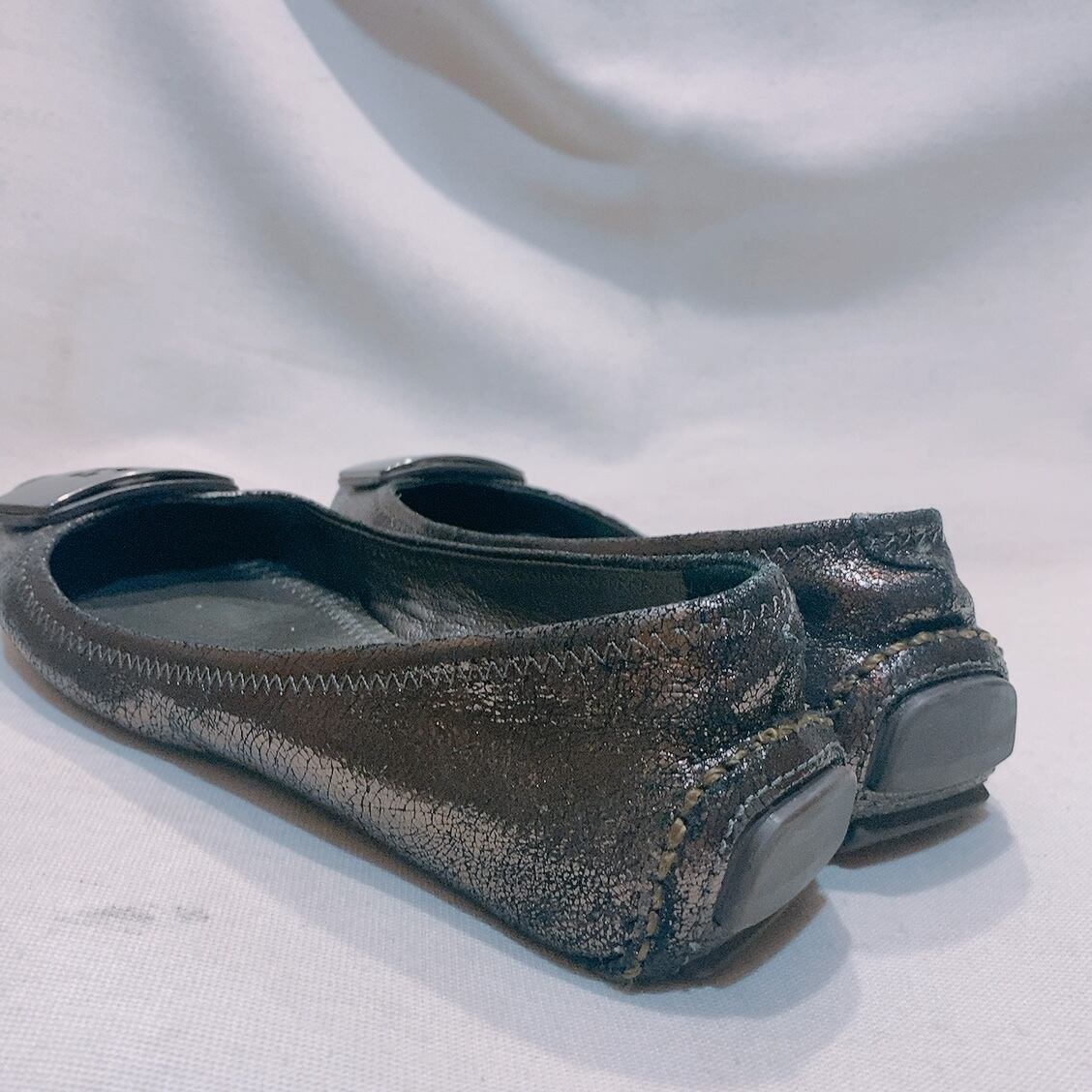トリーバーチ フラットシューズ メタリックグレー レザー TORY BURCH