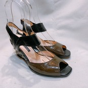 エミコカミシマ レザーサンダル 深緑色 モザイク柄 レザー EMIKO KAMISHIMA RABOKIGOSHI works