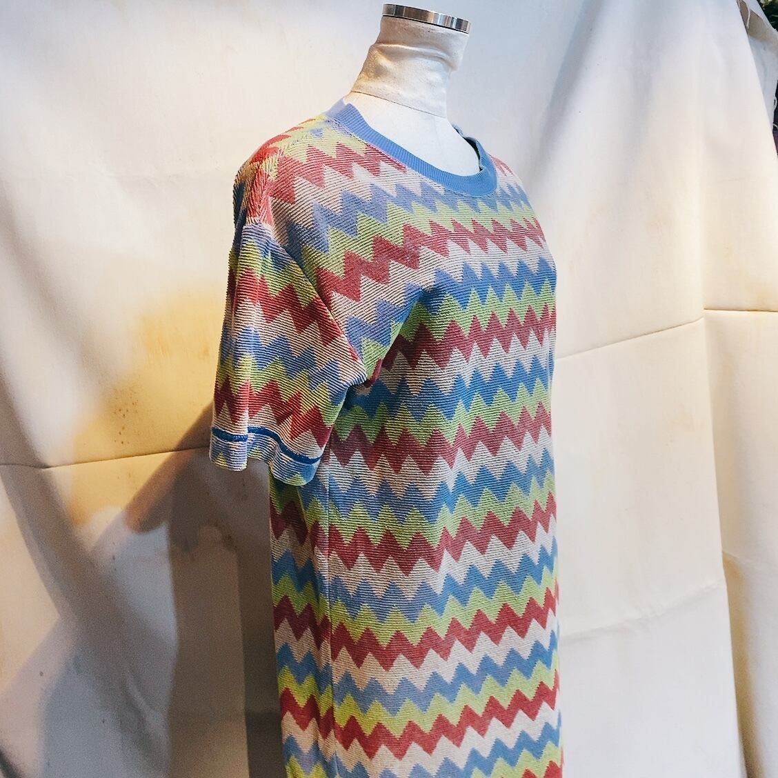 ミッソーニ 半袖ワンピース ベージュ 水色 黄緑色 赤色 MISSONI