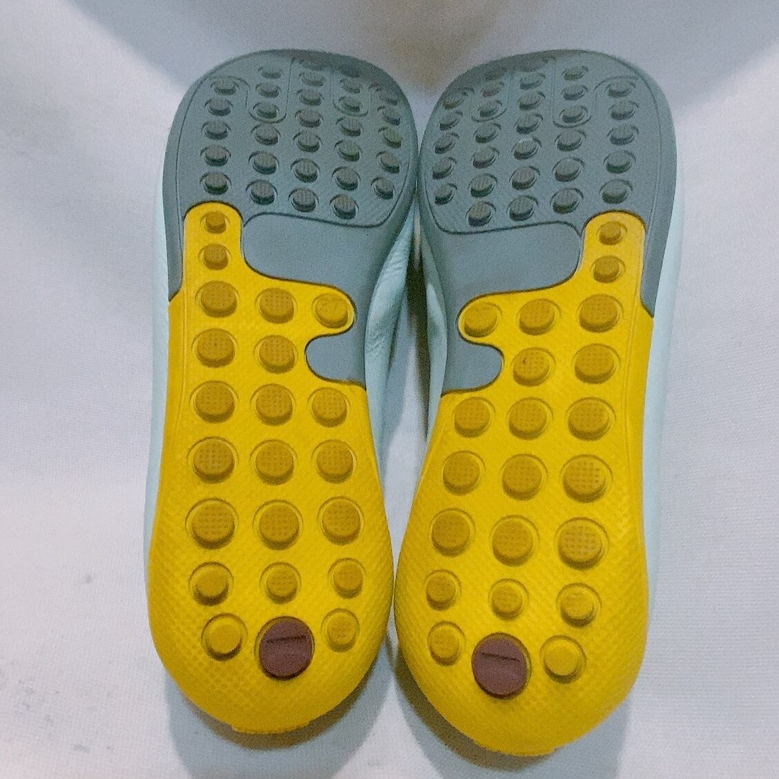 カンペールのレザーシューズは、優れた品質と履き心地が自慢の逸品です。水色のカラーリングがさわやかで爽やかな印象を与え、フェミニンなコーディネートにもぴったり。上質なレザー素材を使っているため、足と靴とのフィット感が良く、歩くときの快適性も抜群です。