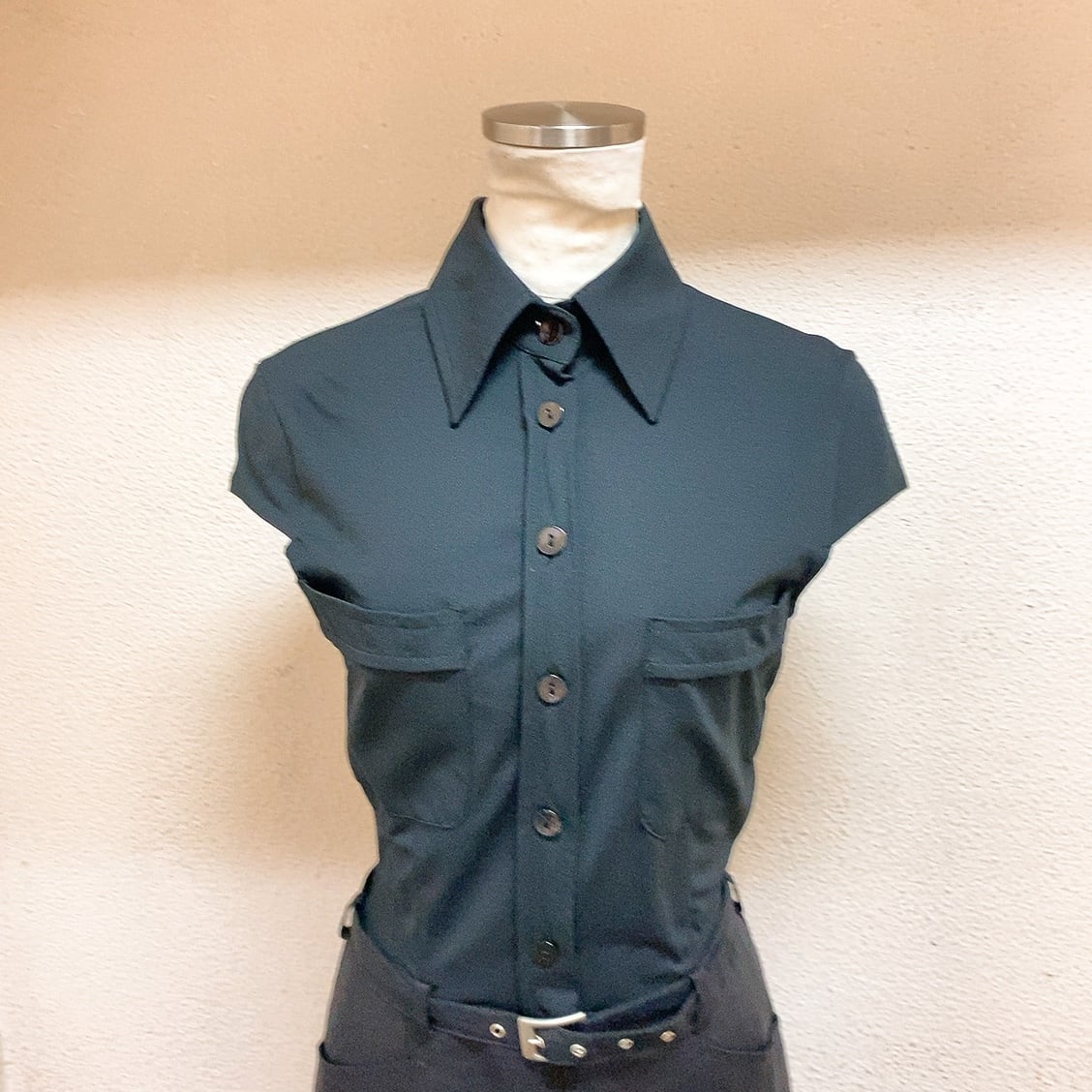 ● サイズ 38 肩幅約38センチ、袖丈約7センチ、身幅約43センチ、ウエスト約63センチ、ヒップ約86センチ、身丈約92センチ