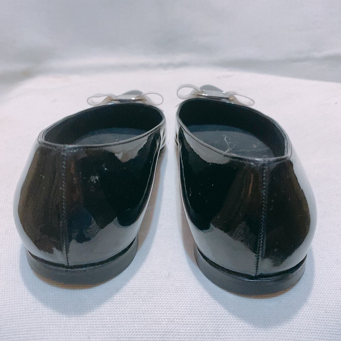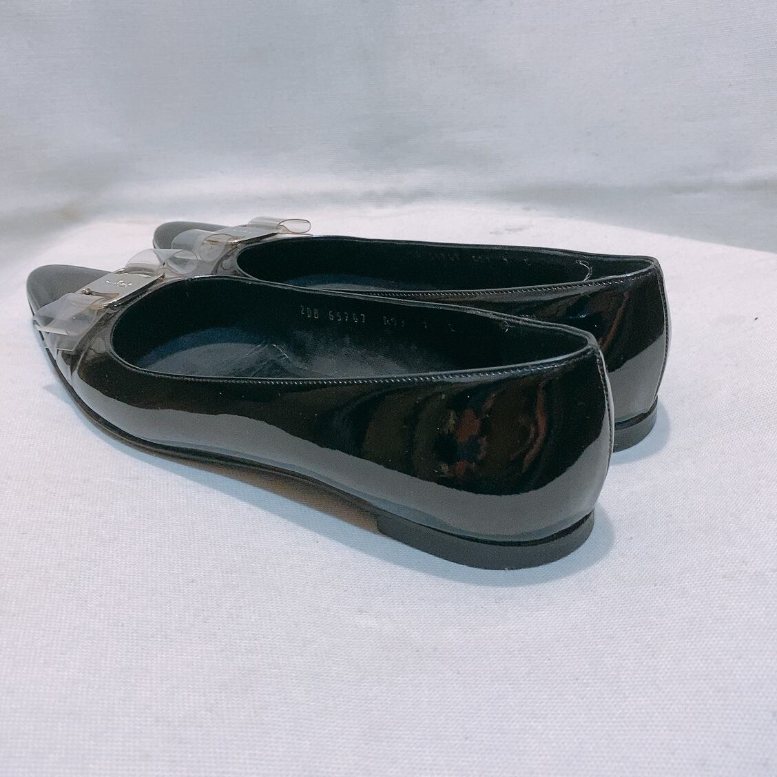 フェラガモ フラットシューズ 黒 エナメル リボン クリア バレエシューズ Salvatore Ferragamo