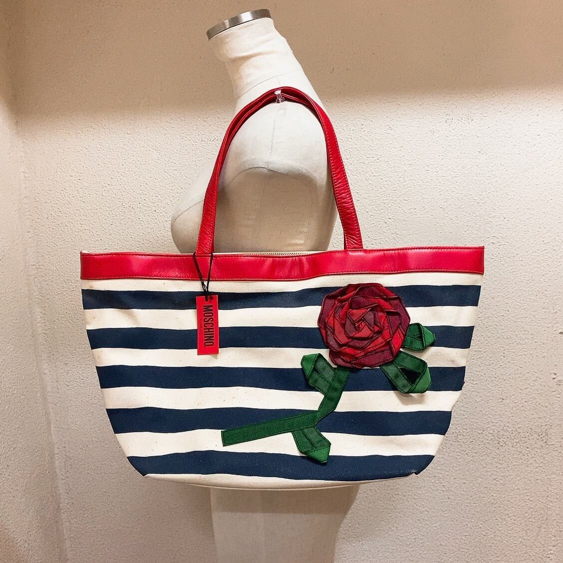 モスキーノ トートバッグ マリン 花柄 白 紺 赤 MOSCHINO