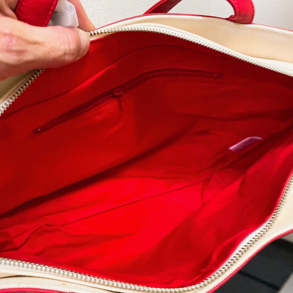 ● 実寸サイズ・ 縦約23センチ、横約38センチ、マチ約16センチ、ハンドル約44センチ