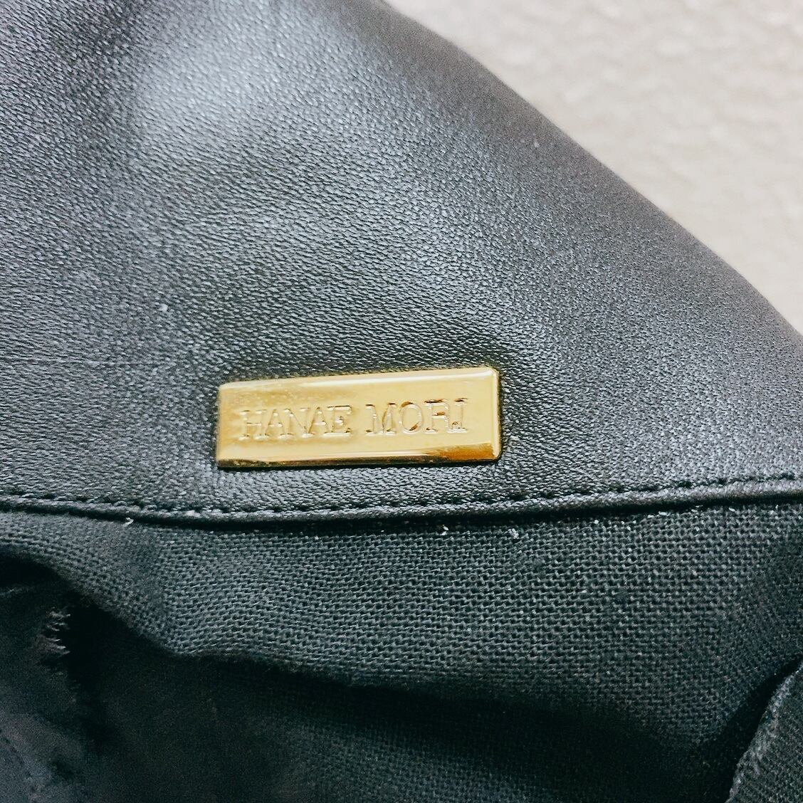 ハナエモリ ショルダーバッグ 黒 巾着 レザー リボン HANAE MORI