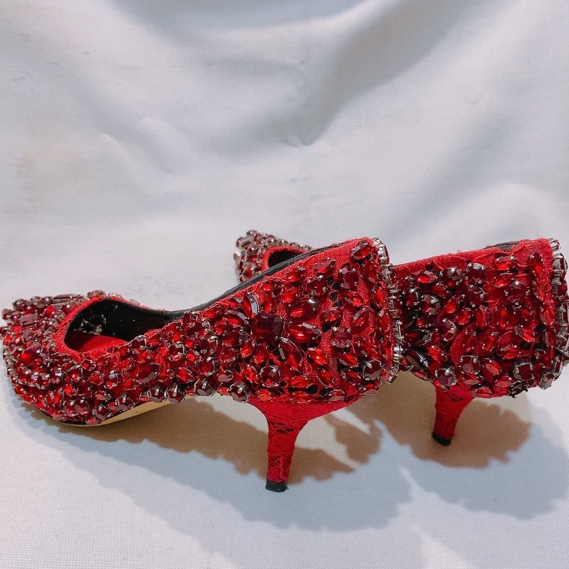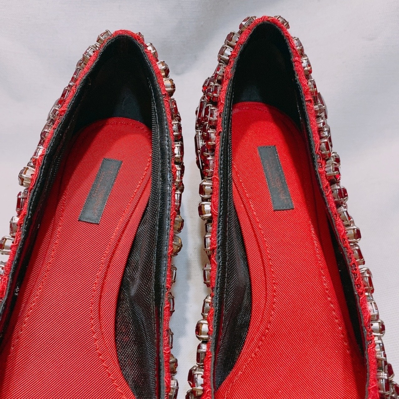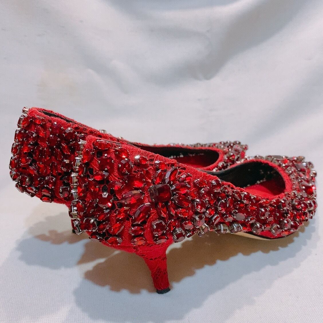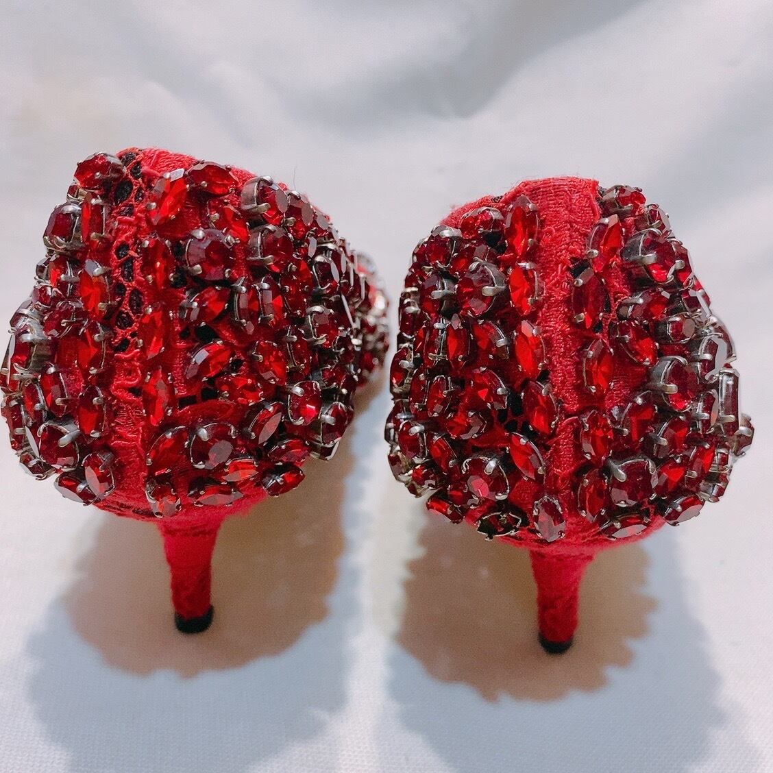 ドルチェ&ガッバーナ パンプス 赤色 レース ラインストーン DOLCE&GABBANA