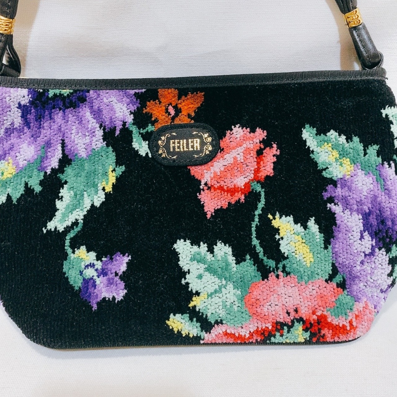 フェイラー ハンドバッグ 黒 花柄 FEILER