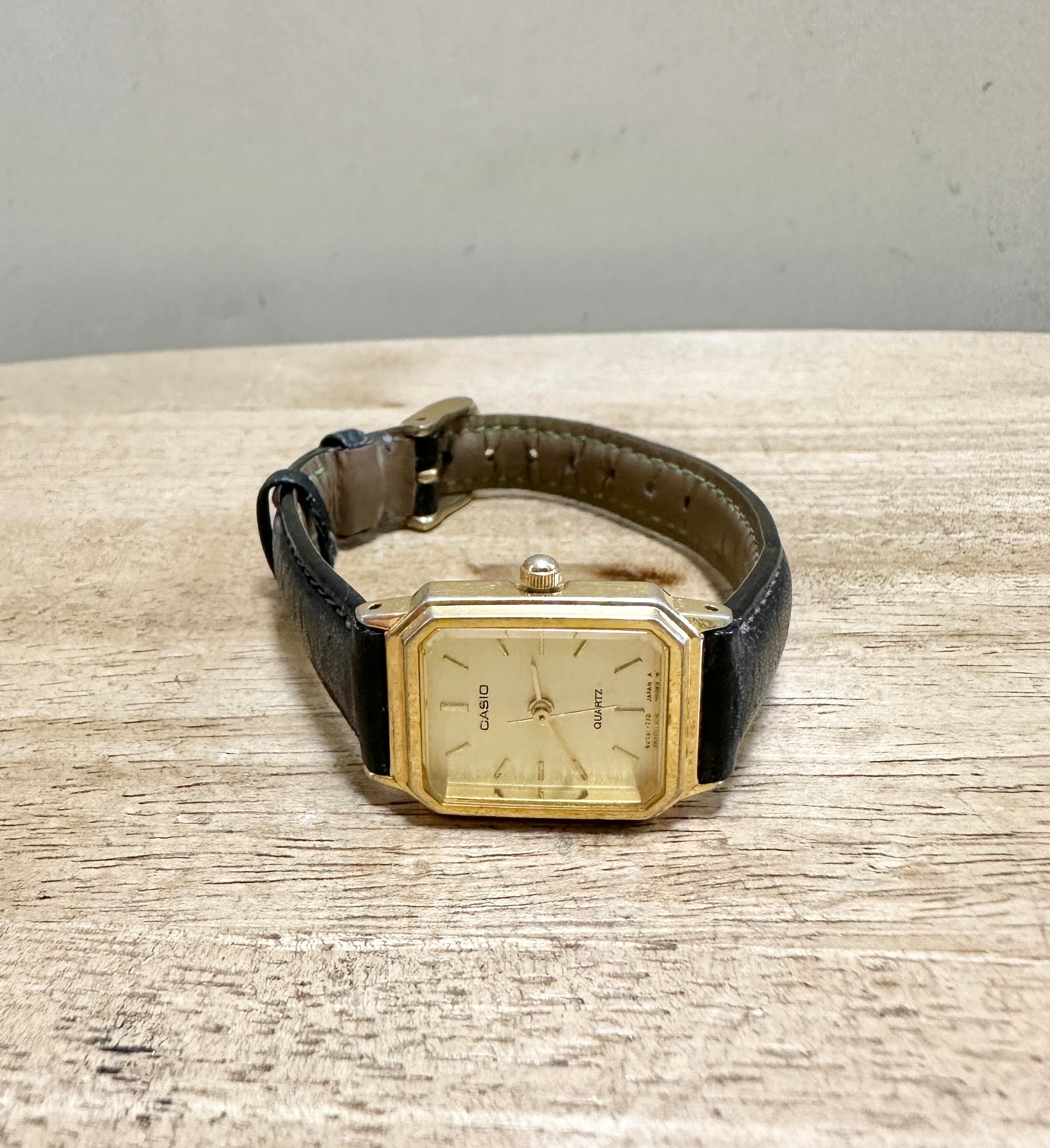 腕時計 カシオ 黒 ゴールド レザー CASIO