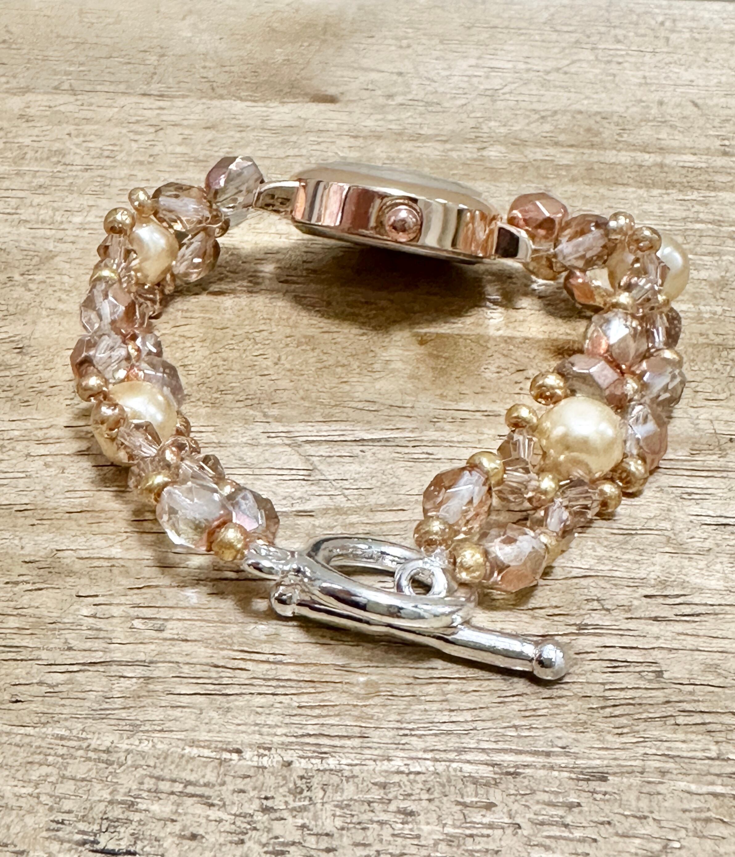 腕時計 ヴィンテージ ビーズ パール ピンクゴールド