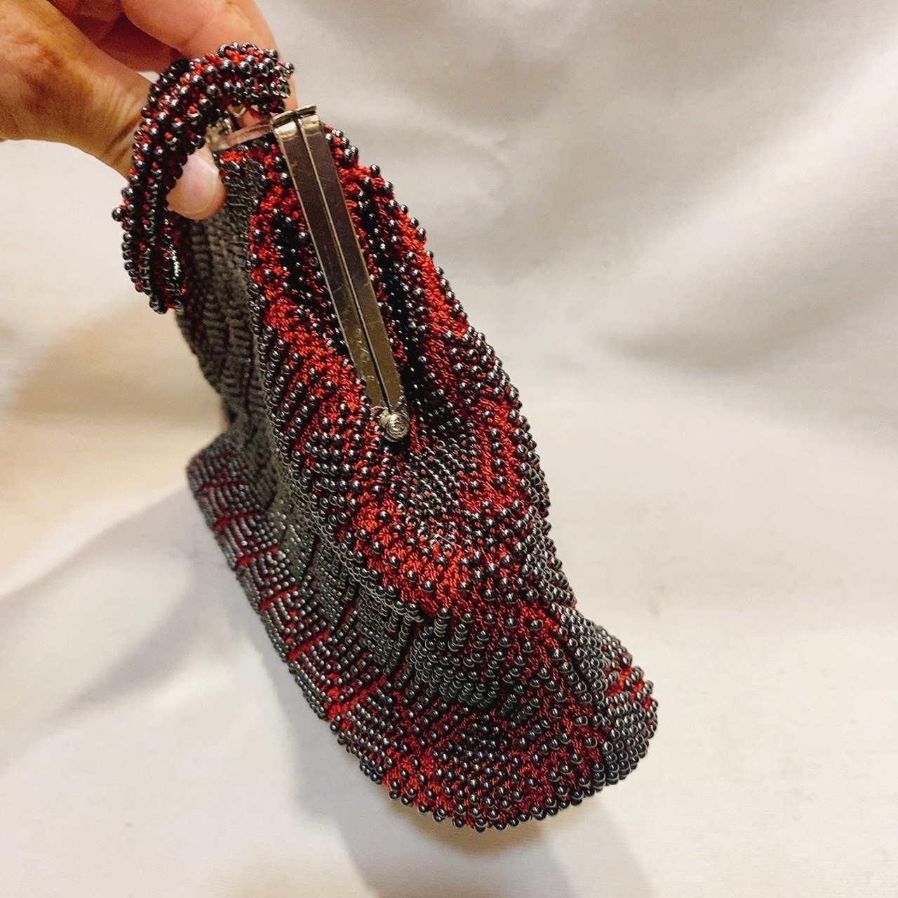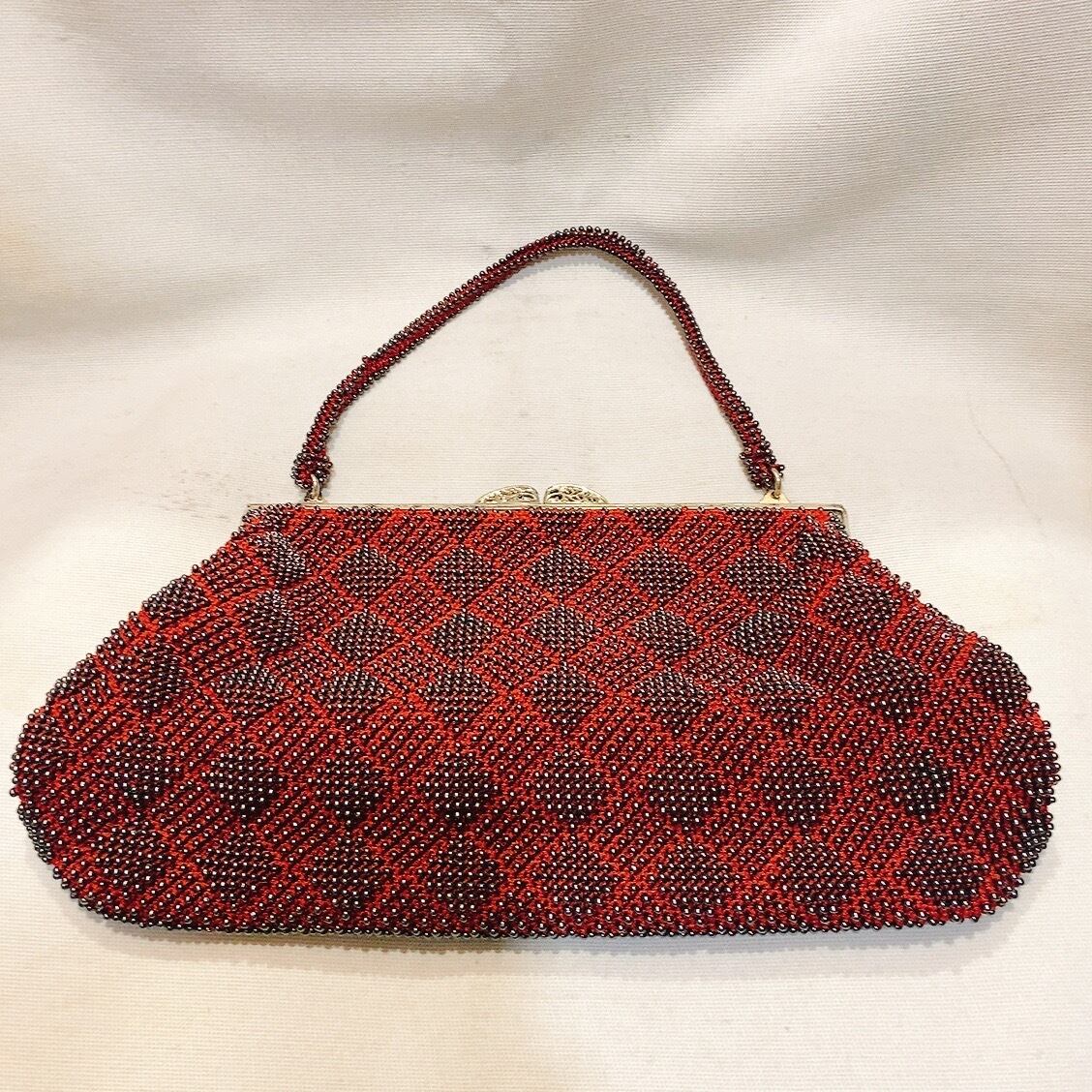 ヴィンテージ ビーズバッグ エンジ色 vintage bags