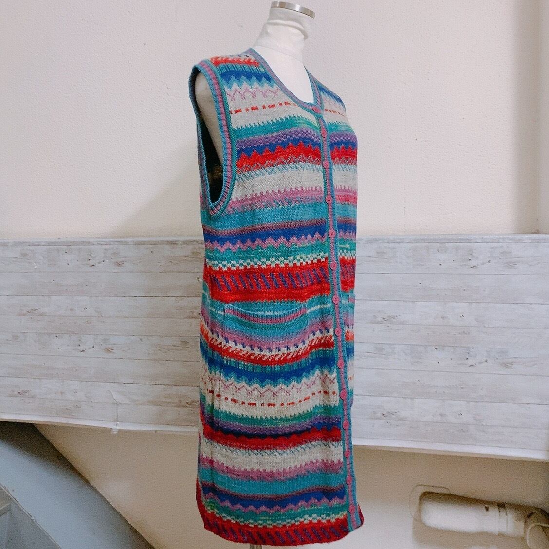 モリオカサチコ ニットノースリーブワンピース 赤 青 ピンク MORIOKA SACHIKO