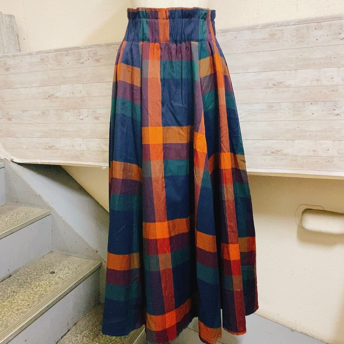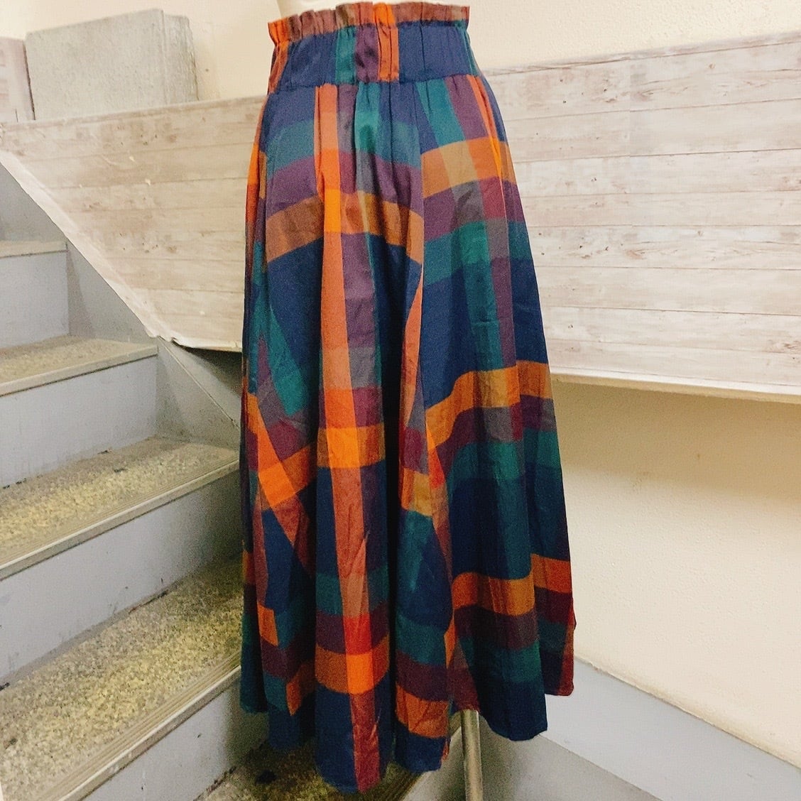 ヴィンテージ ロングスカート 茶色 緑色 チェック柄 vintage skirt