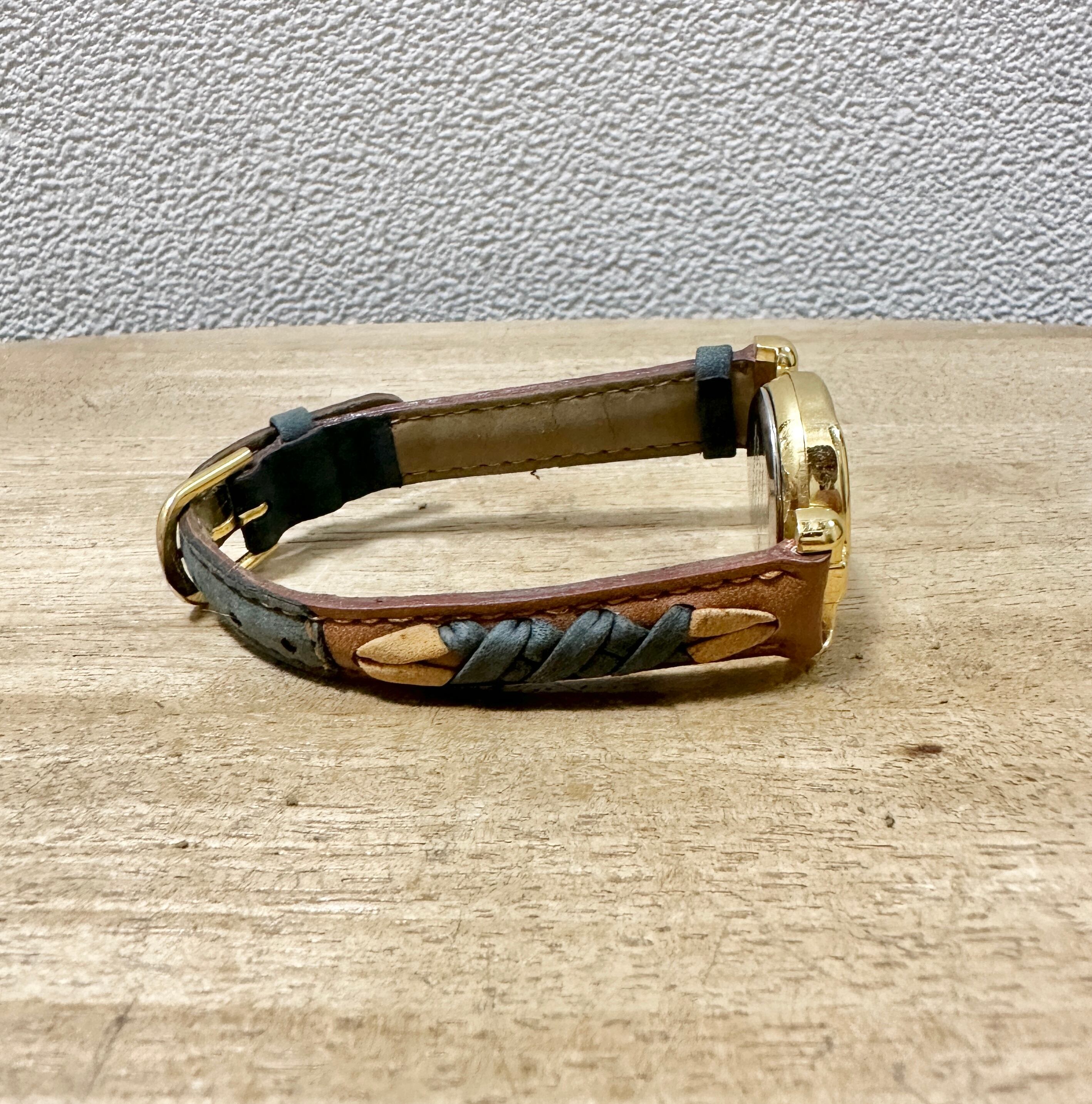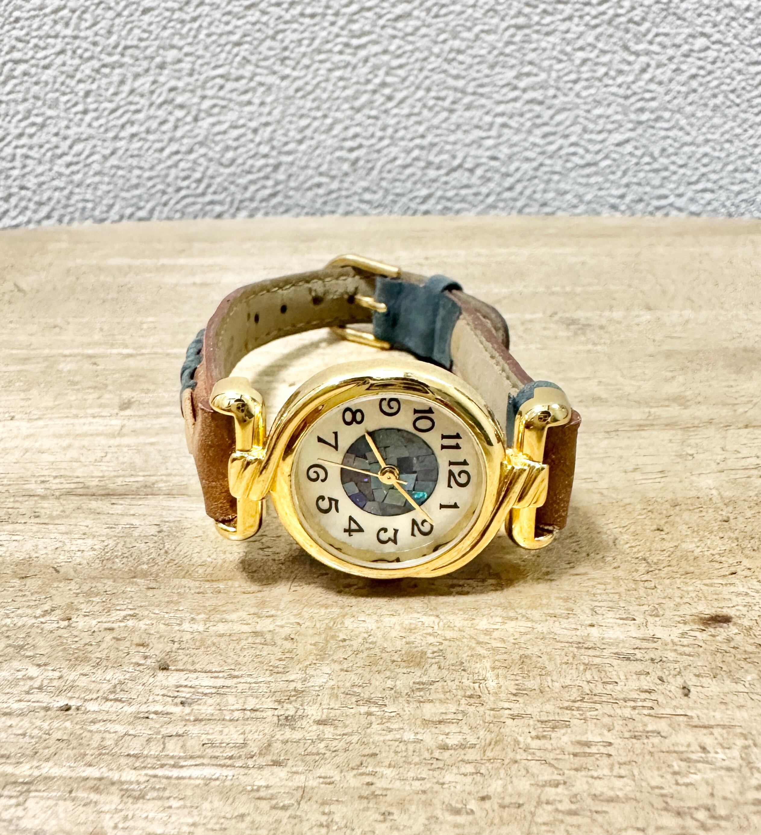 腕時計 ヴィンテージ レザー ブラウン系 18金メッキ オーストラリア産オパール使用