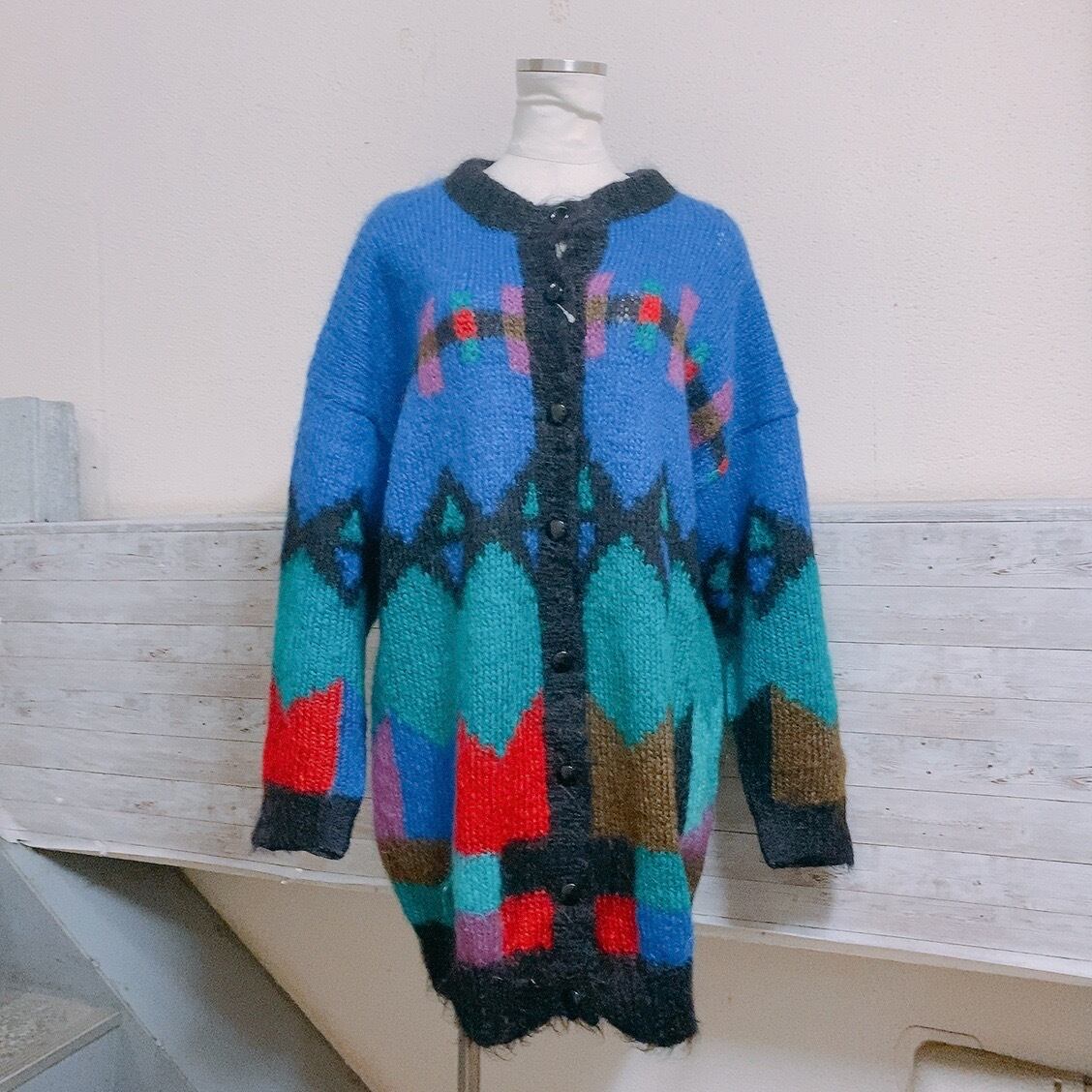ヴィンテージ カーディガン 青 緑 赤 vintage cardigan