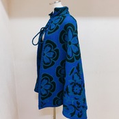 ヴィンテージ ポンチョ 青 黒 花柄 vintage knit