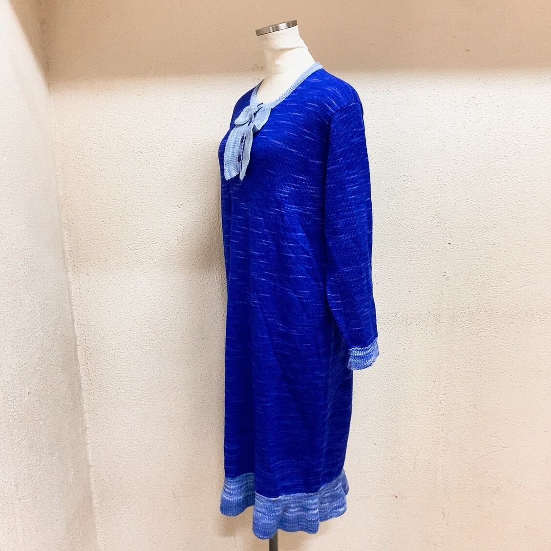 モリオカサチコ 長袖ワンピース ニットワンピース ウール アルパカ 青 紫 MORIOKA SACHIKO