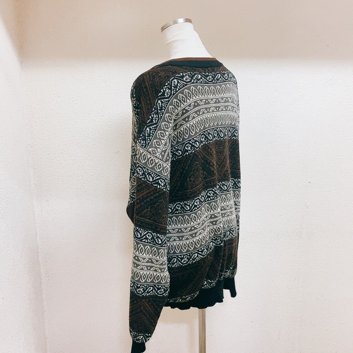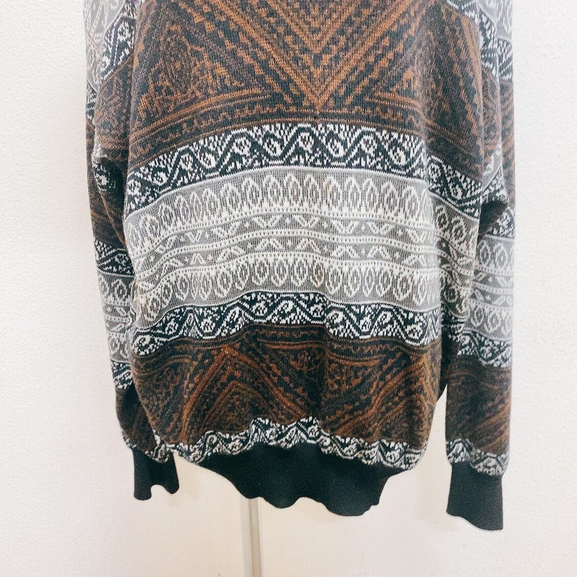 ヴィンテージ 長袖ニット ウール 焦げ茶 グレース 白 黒 vintage knit
