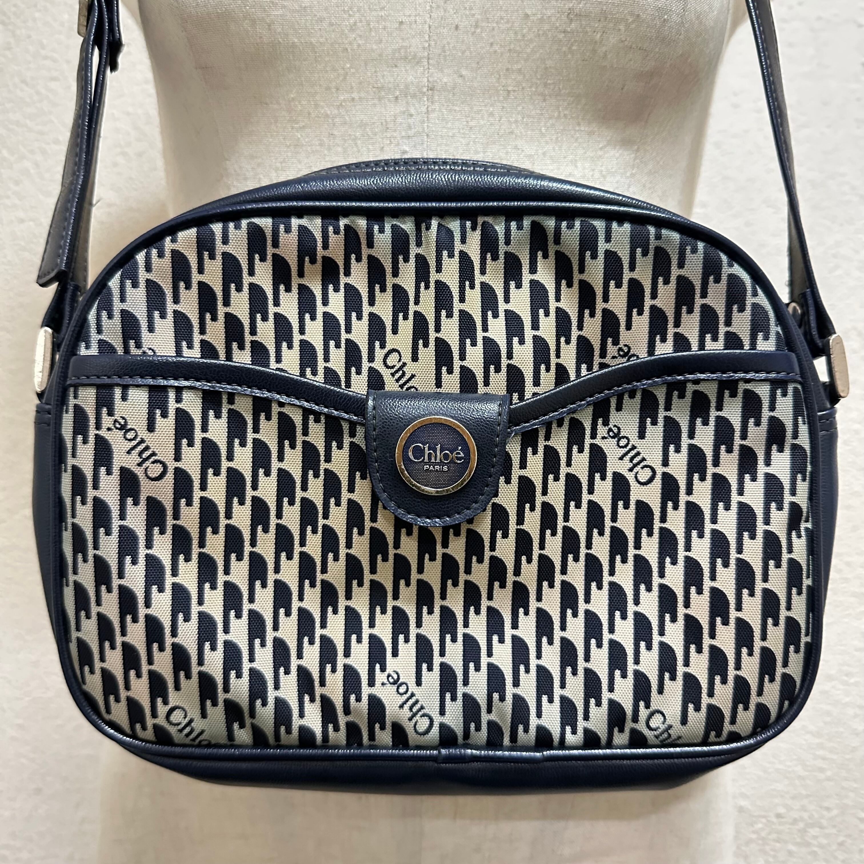 クロエ ショルダーバッグ ネイビー 柄