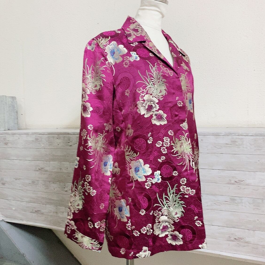 ヴィンテージ ジャケット 赤紫色 花柄 刺繍 vintage jacket