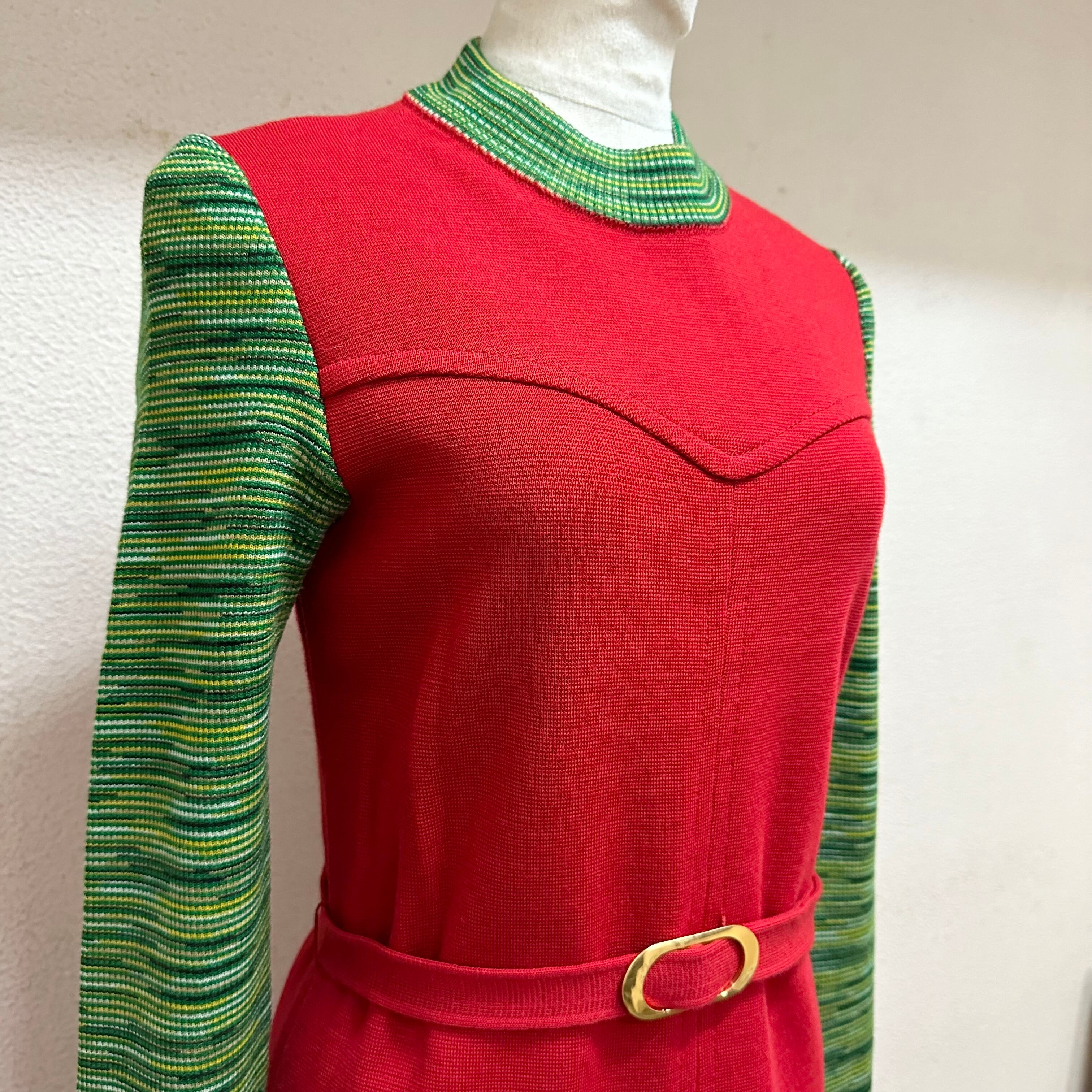 ヴィンテージ ニットワンピース ボーダー 赤 緑
