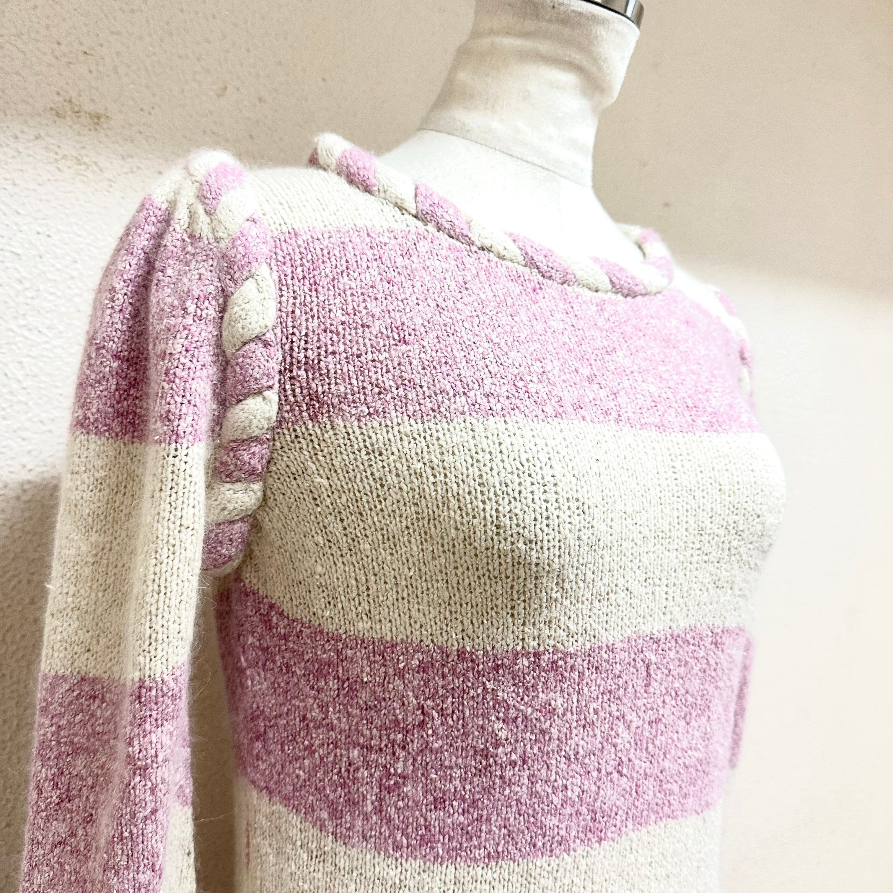ヴィンテージ 長袖ニット ボーダー ピンク ホワイト