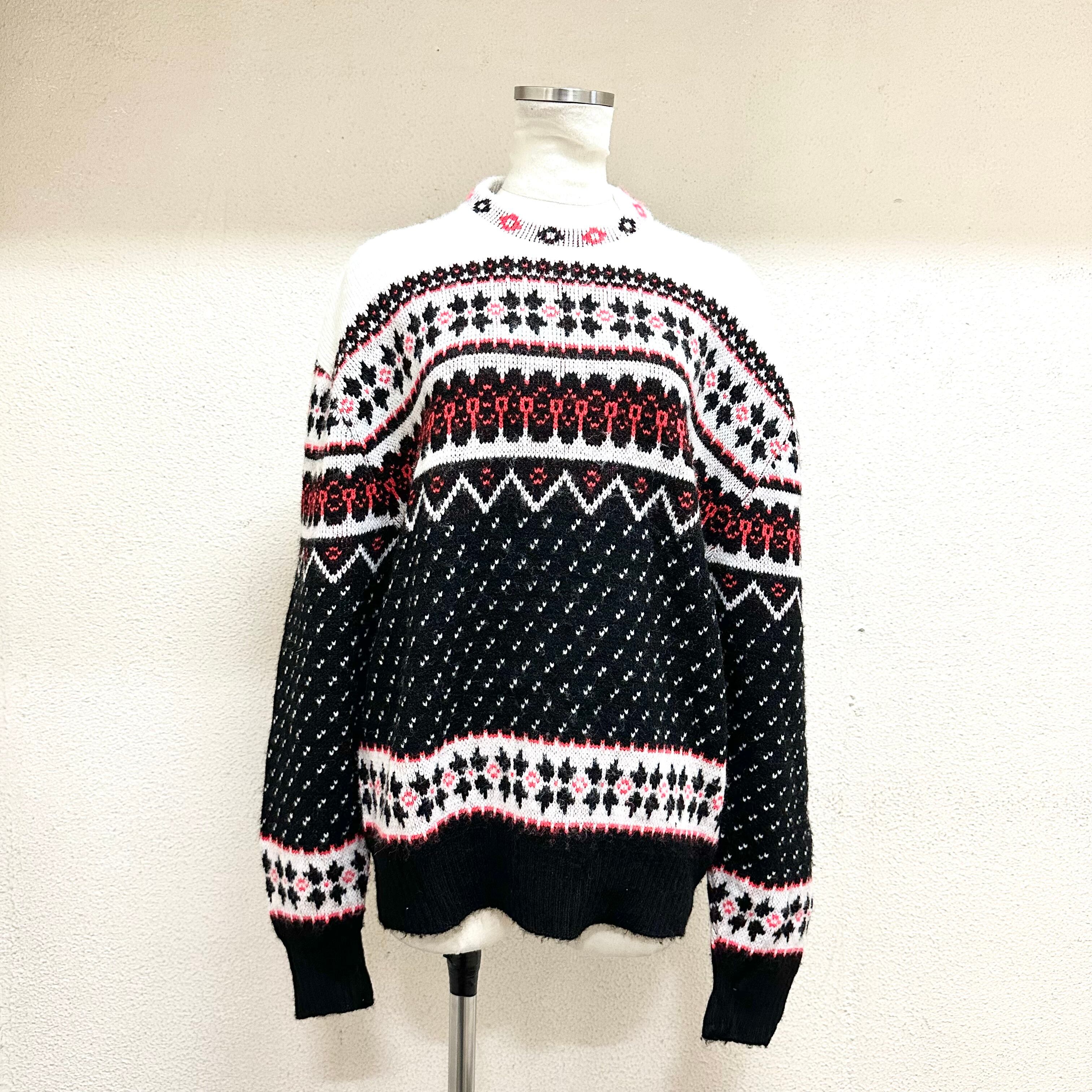 ヴィンテージ 長袖ニット アメリカ製 ノルディック柄 白 黒 赤