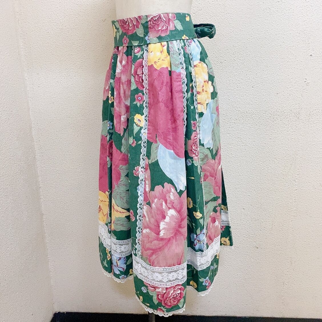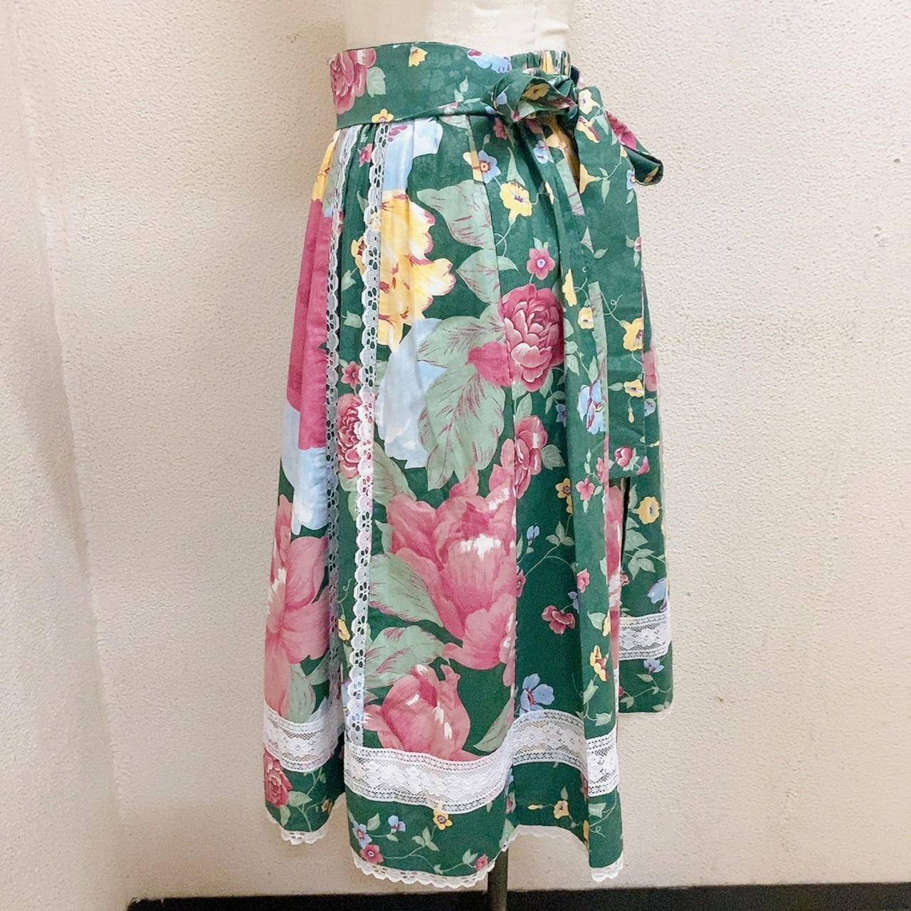 ヴィンテージ スカート 緑 ピンク 花柄 レース vintage skirt ハワイ製