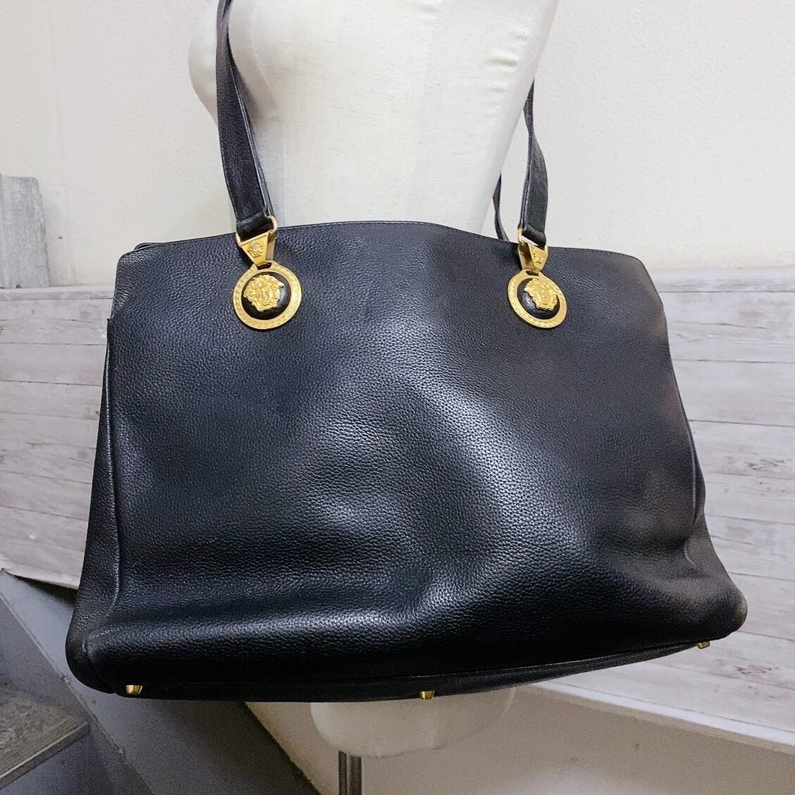 ヴェルサーチ レザートートバッグ 黒色 金 メデューサ GIANNI VERSACE