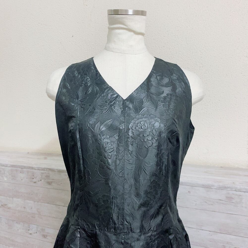 ヴィンテージ ノースリーブワンピース 黒 花柄 シルク vintage onepiece