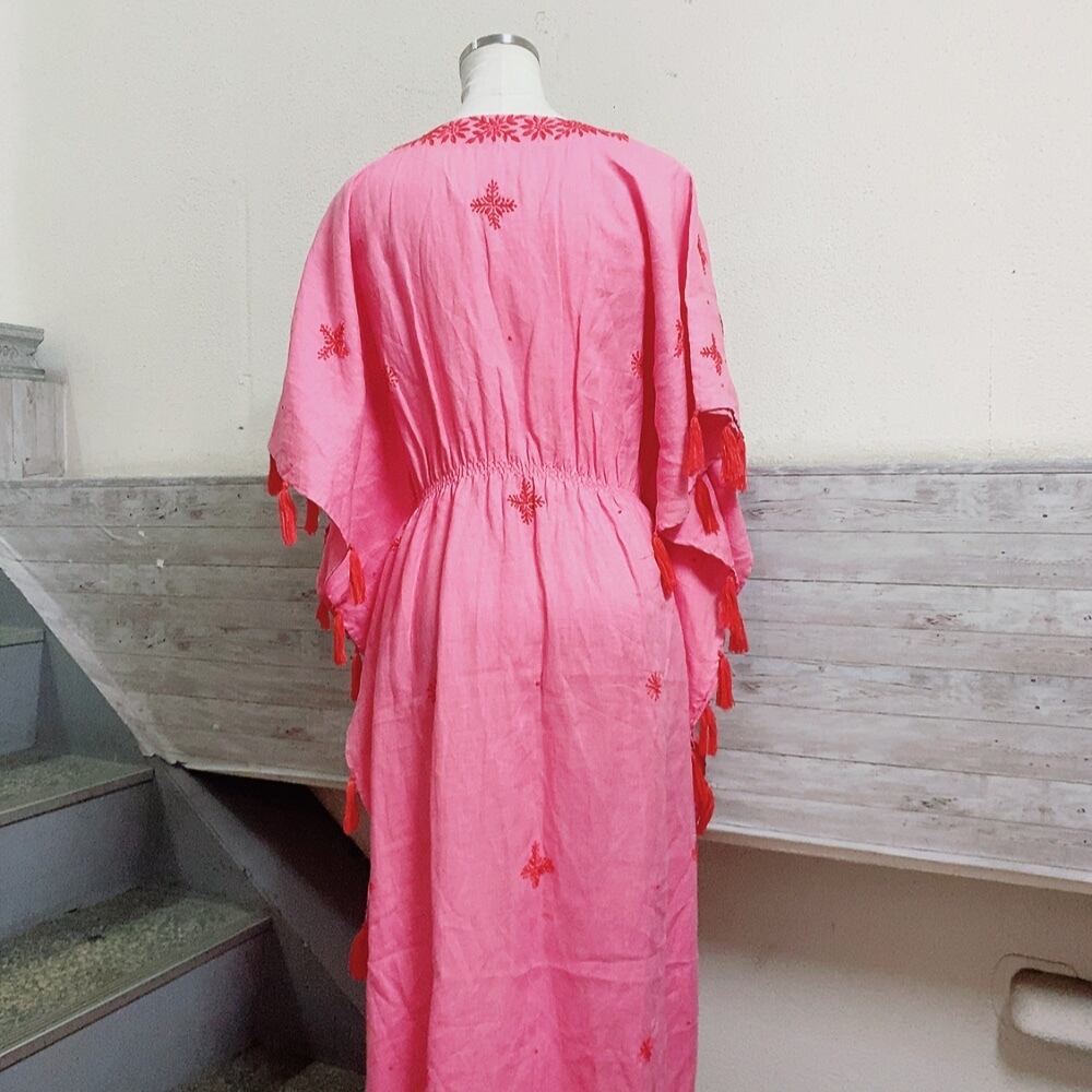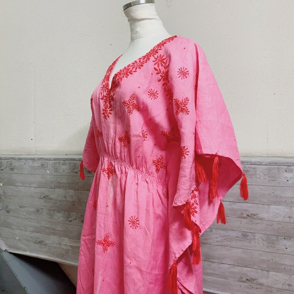 ヴィンテージ 半袖ワンピース ピンク色 花柄刺繍 vintage onepiece