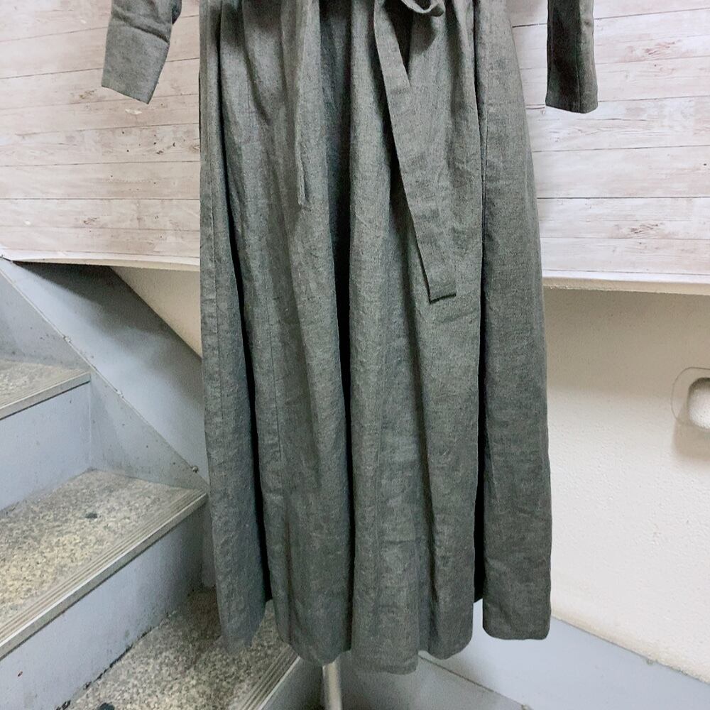 ドゥーブルメゾン 長袖ワンピース チャコールグレー色 麻 DOUBLE MAISON 美品