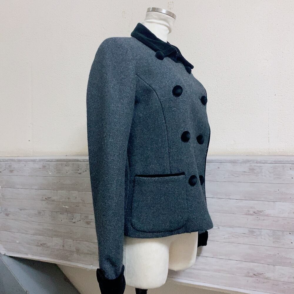 ヴィンテージ ウールジャケット グレー 黒 ベロア ダブル vintage jacket