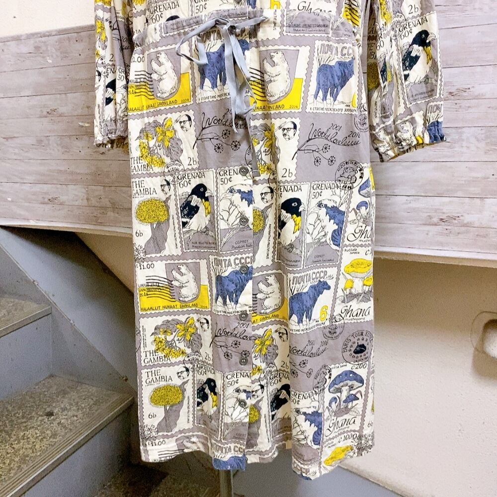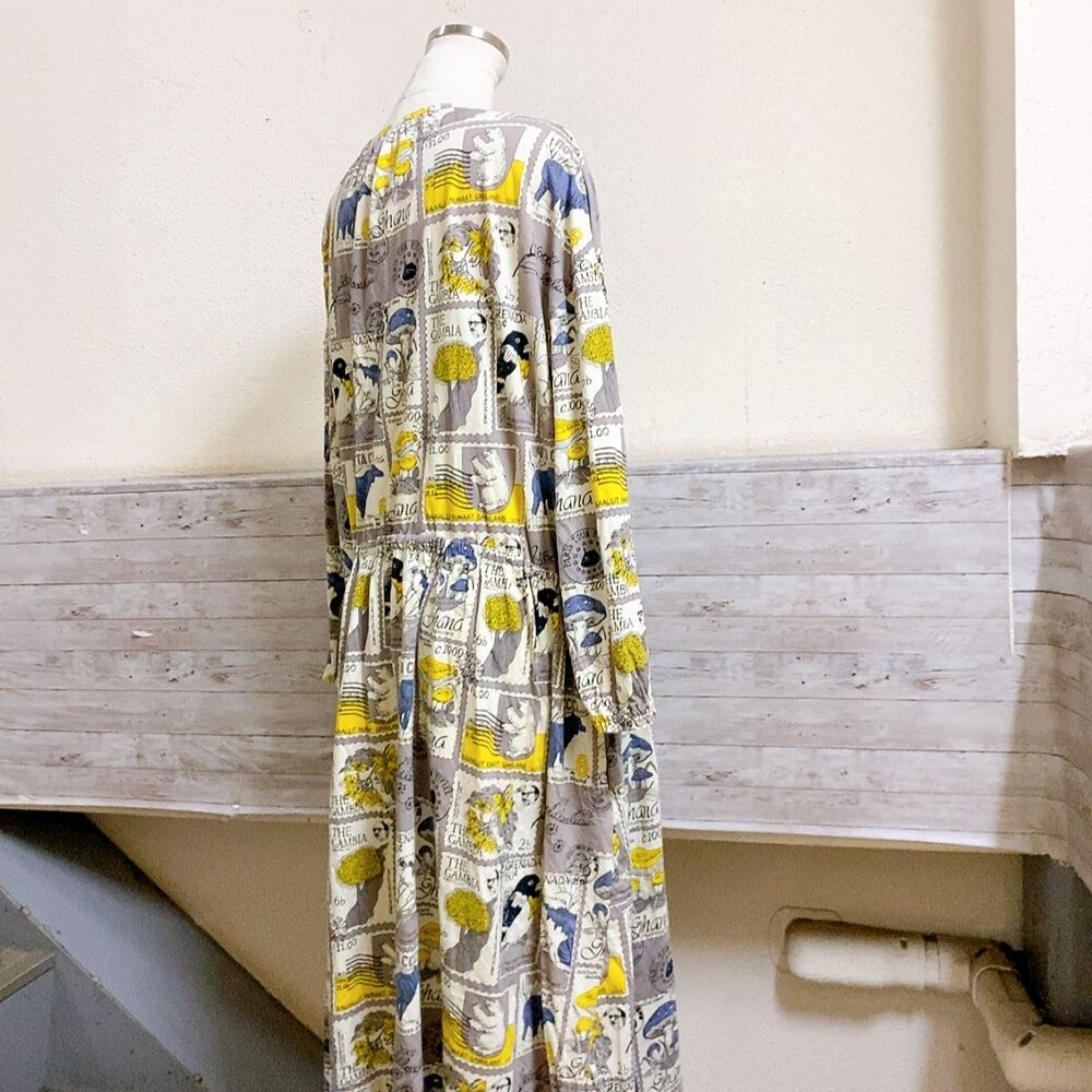 マーブルシッド 長袖ワンピース グレー色 切手柄 marble SUD