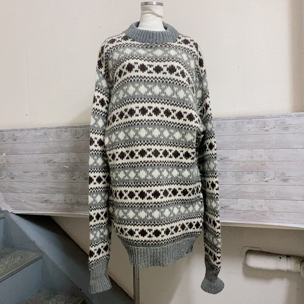 ヴィンテージ 長袖ニット グレー色 デンマーク製 vintage knit