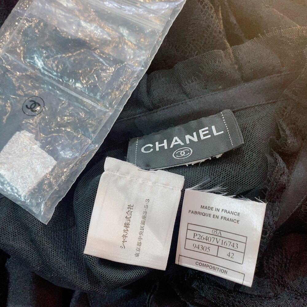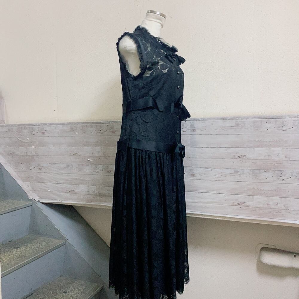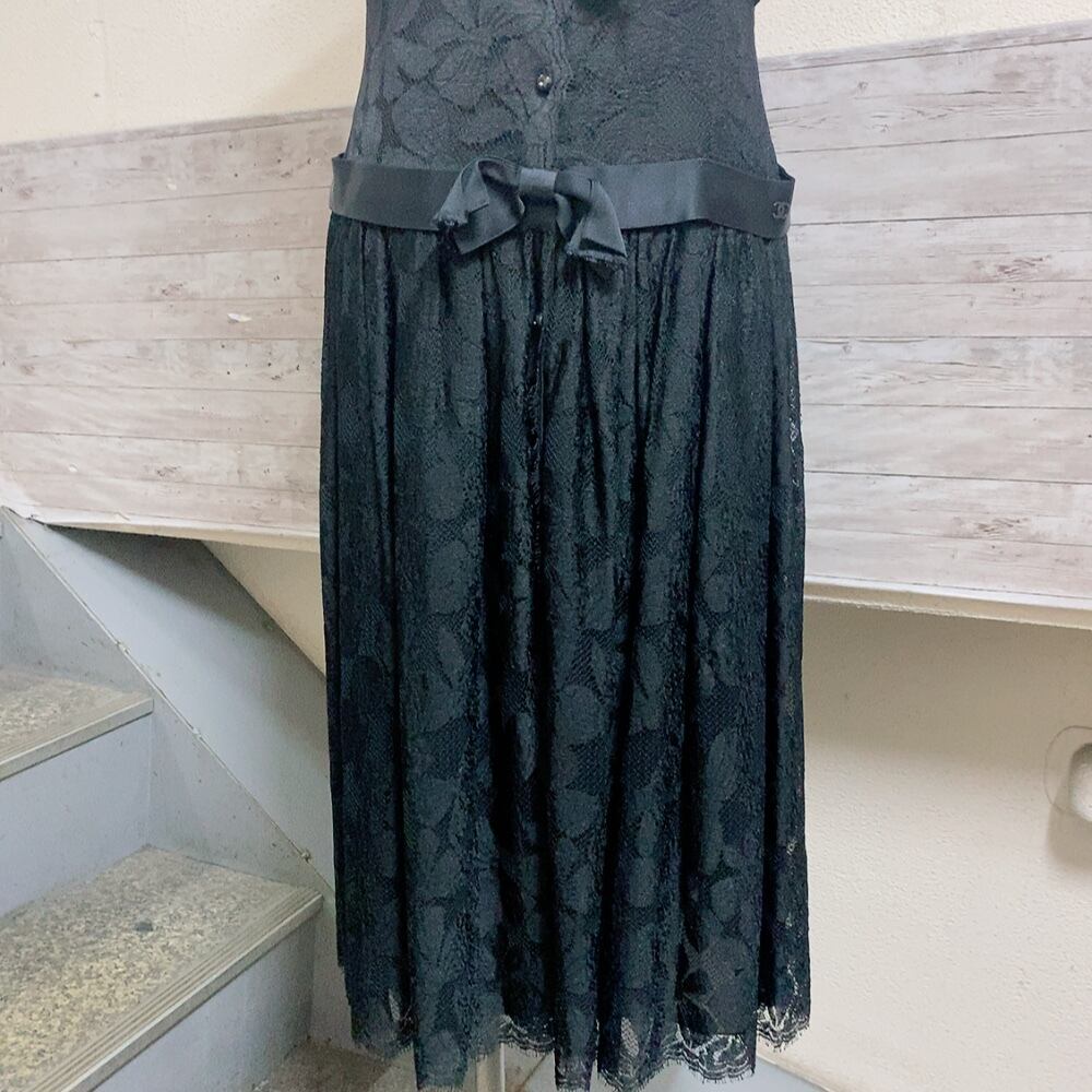 シャネル ノースリーブワンピース 黒 レース リボン 花柄 CHANEL 美品