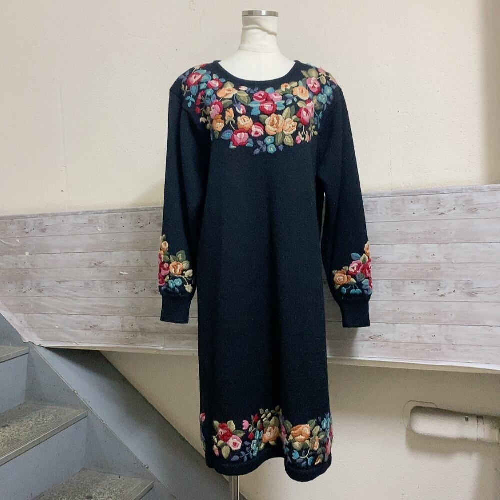 ヴィンテージ ニットワンピース 花柄 刺繍 vintage knit onepiece