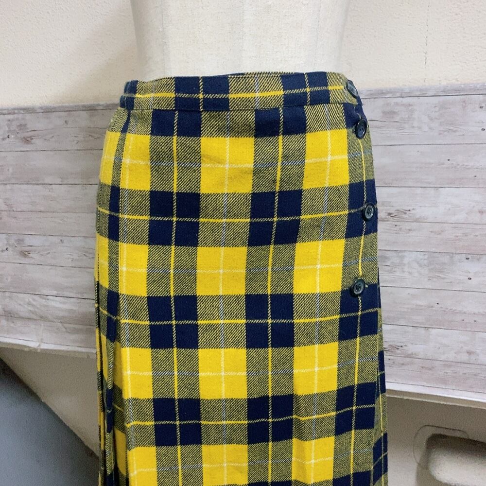 マックスマーラ 巻きスカート 黄色 紺色 チェック柄 Max Mara ヴィンテージ
